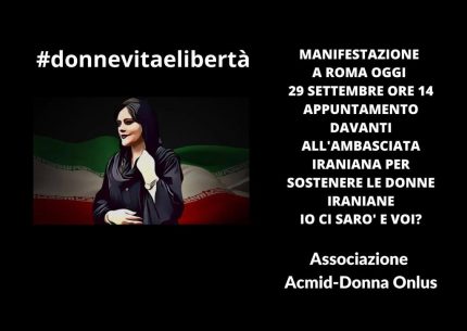 Dopo le recenti uccisioni ai danni delle donne in Iran per un velo portato male o per una protesta in più, oggi 29 settembre 2022, alle ore 14:00, si svolgerà una manifestazione proprio davanti all’Ambasciata dell’Iran a Roma, organizzata dalla resistenza delle donne iraniane insieme all’Associazione delle comunità delle donne marocchine in Italia (Acmid – Donna Onlus).
